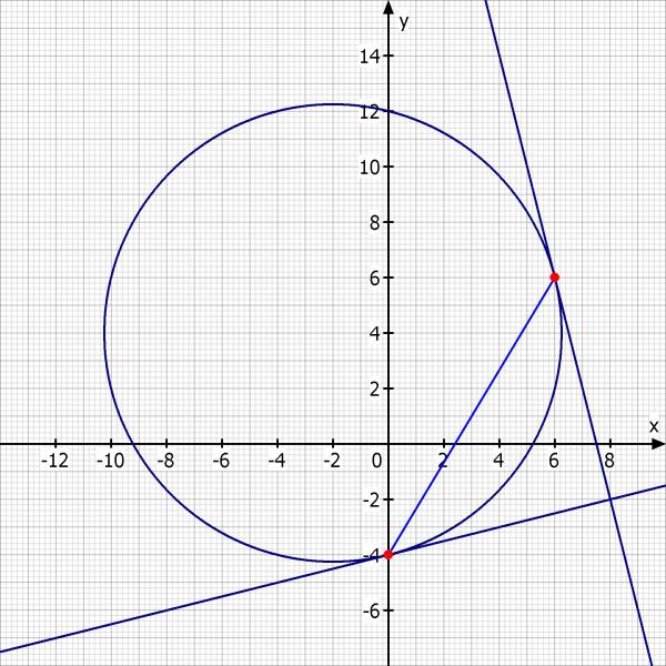 2) Stelle Gleichungen der Tangenten an diesen Kreis in den Punkten A und B auf!