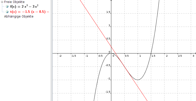 t(x) = -1,5 * (x - 0,5) - 0,5 - genauso, wie Du es berechnet hast, prima!!