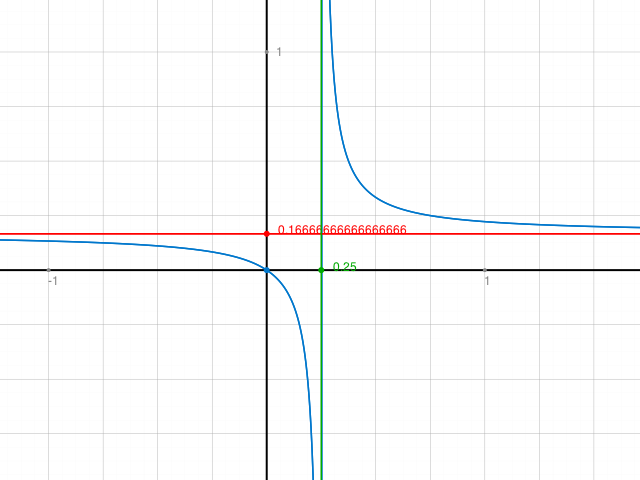 rot und grün die Asymptoten an die Höhenkurve. x = 1/4 und y=1/6