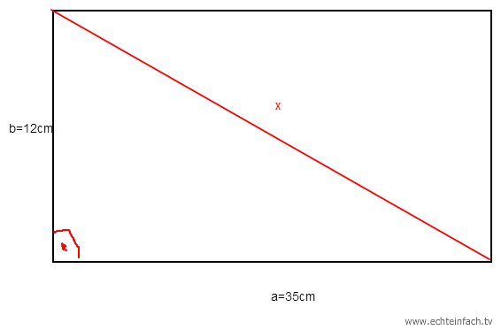 Hier haben wir schon die Lösung! Sie lautet: Die Diagonale des Rechtecks beträgt 37cm!
