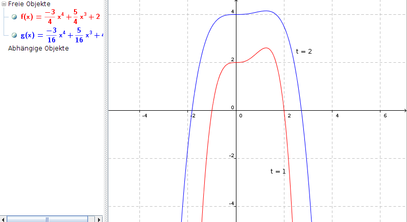 Nehmen wir einmal t = 1 und ein zweites Mal t = 2, dann ergeben sich folgende Graphen: