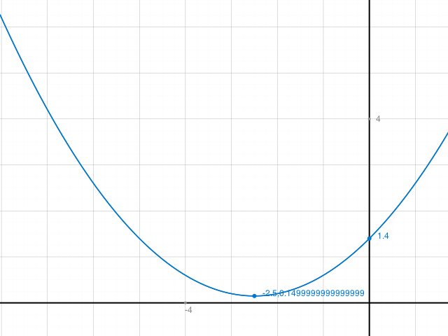 Kontrolle y=0,2x^2+x+1,4 aufzeichnen und sehen, dass die Kurve die x-Achse nicht schneidet: