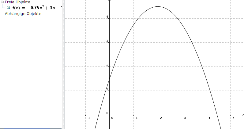 f(x) = -0,75x2 + 3x + 1,5 = 0 | : (-0,75)