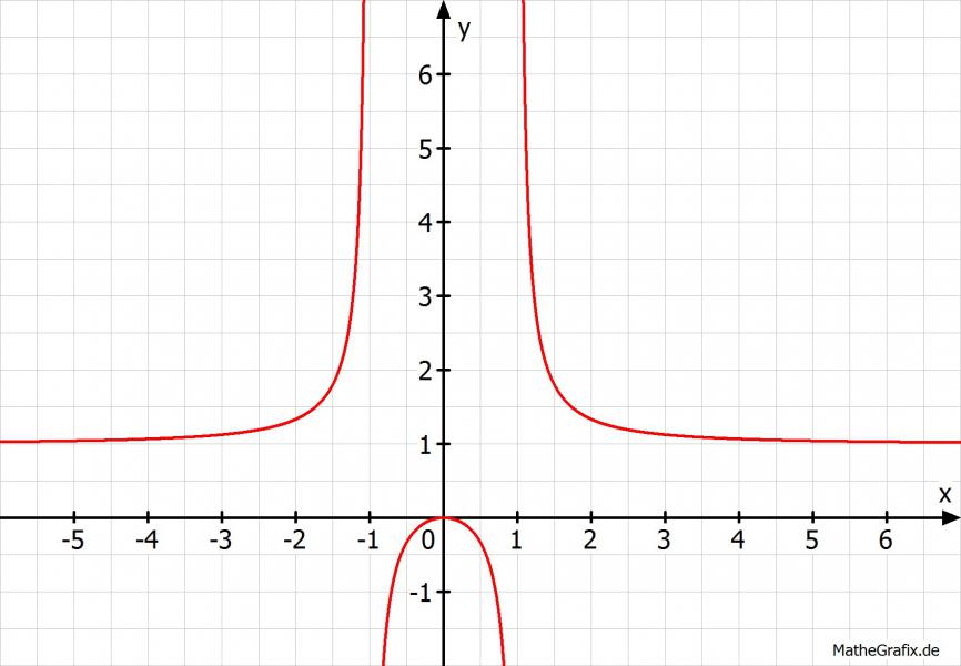Die senkrechten habe ich schon genannte. Die waagerechte Asymptote -> hier wird das Verhalten von x gegen + und - unendlich angeschaut. Hier kann man auch Argumentieren "Der Zählergrad ist kleiner als der Nennergrad" (also auf die höchste Potenz bezogen) und um es unmathematisch auszudrücken "Der Nenner wächst schneller als der Zähler" und deswegen geht das ganze gegen 0.