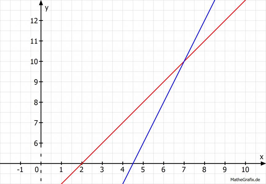 Du siehst der Schnittpunkt ist bei S(7|10)
