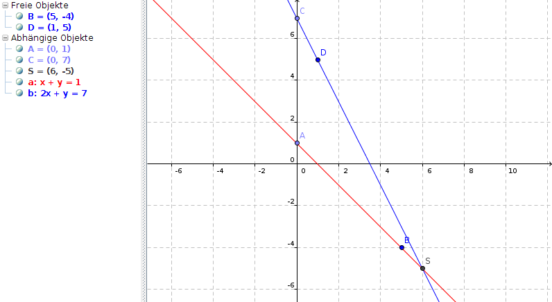 Es sieht so aus, als wäre der Schnittpunkt der beiden Geraden S(6|-5).