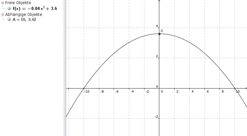 wenn die Zahlen so stimmen, kannst Du ja den Scheitelpunkt (0|3,60) in die Funktionsgleichung einsetzen: