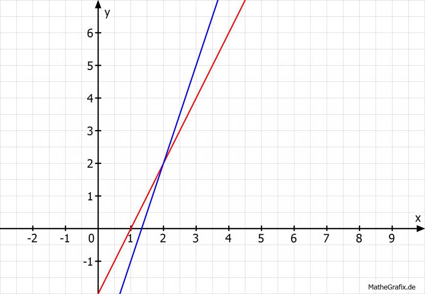 Du siehst, die beiden Funktionen schneiden sich bei S(2|2) und dann ist dein x=2 und dein y=2