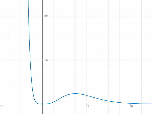 $$ \left. \begin{array} { l } { f ( x ) = x ^ { 4 } · e ^ { - \frac { x } { 3 } } } \\ { f ^ { \prime } ( x ) = e ^ { - \frac { x } { 3 } } · \left( 4 x ^ { 3 } - \frac { x ^ { 4 } } { 3 } \right) } \\ { f ^ { \prime \prime } ( x ) = e ^ { - \frac { x } { 3 } } \left( \frac { 1 } { 9 } x ^ { 4 } - \frac { 8 } { 3 } x ^ { 3 } - 12 x ^ { 2 } \right) } \end{array} \right. $$