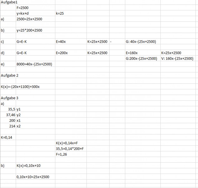 Übungsblatt: Lineare Funktionen in der Wirtschaft