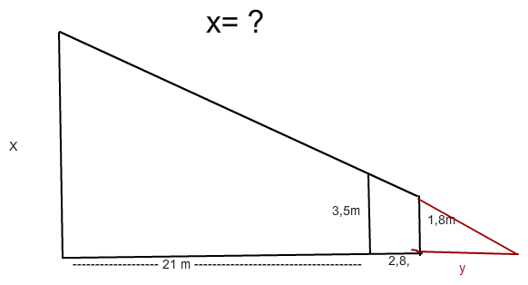 1. Ergänze die Figur zu einer Strahlensatzfigur, indem du nach rechts ein kleines Dreieck anhängst. (Strahlen zum Scheitelpunkt verlängern)