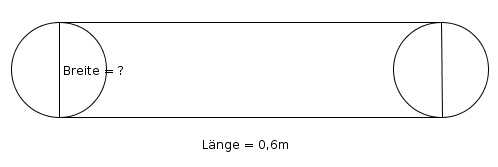 U = 22 = 0,6 * 2 + 2πr = 0,6 * 2 + 2π*(Breite/2) = 1,2 + 2π * (Breite/2)