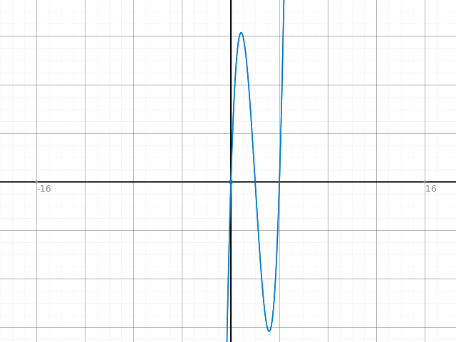 Die Funktion hat also zwei Wendepunkte, diese liegen schätzungsweise bei x=3/4 und x=3.