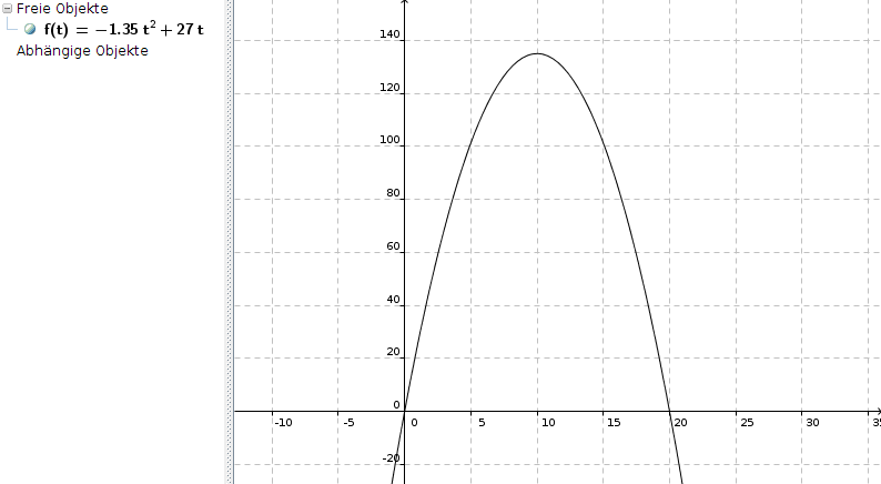 III. f(20) = 0 = 400a + 20b | Nach 20 Minuten wieder am Ausgangspunkt