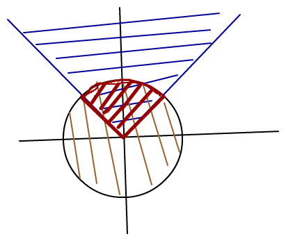 Du bestimmst die Schnittmenge einer Kreisscheibe mit einem Teil der Zeichenebene.
