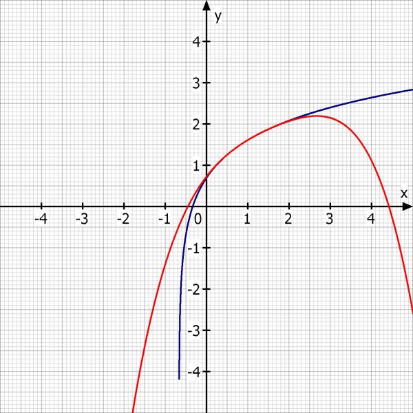 Blau die Funktion und rot das Taylorpolynom