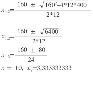 V'(x) = 400 - 160x + 12 x^2 = 0