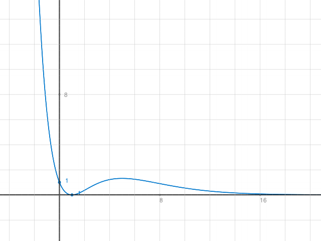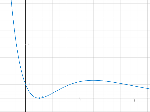 0 = -0.5*(x-1)(x-5)*e^{-x/2}
