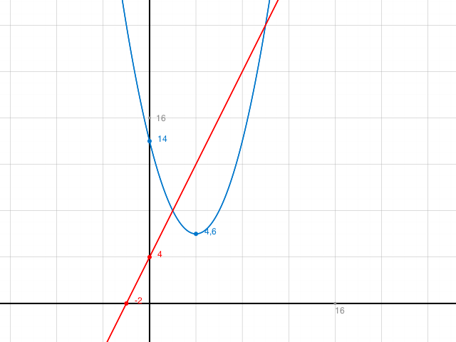 f(x) = 1/2 x² - 4x + 14 und g(x) = 2x + 4