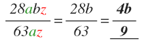 \frac { 28abz }{ 63az } =\frac { 28b }{ 63 } =\frac { 4b }{ 9 }