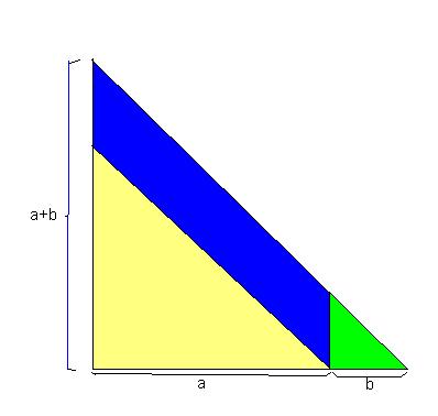 Zeichnet man sich das ganze auf, so erkennt man, dass sich das vergrößerte Dreieck zusammensetzen lässt aus einem Dreieck der Seitenlänge a, einem Dreieck der Seitenlänge b und einem Parallelogramm mit der Seitenlänge b und der Höhe a.