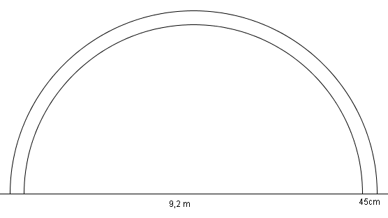 Dieser ist ein Kreisabschnitt mit dem inneren Radius r = 4,6 m und dem äußeren Radius R = 5,05 m.