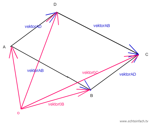 Bemerkung: Das hat nichts mit Analytik zu tun. Wenn du ähnliche Fragen hast, sind Stichwörter Vektoren, Vektoraddition, Vektorgeometrie oder Geometrie hilfreicher.