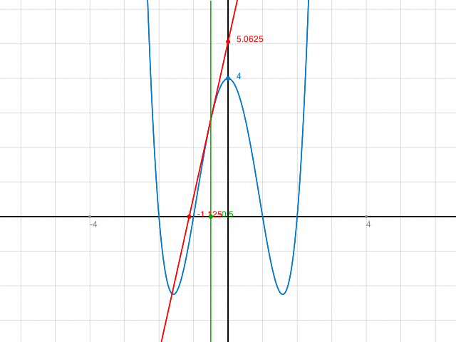 f(-0.5) = 0.5^4 - 5*0.5^2 + 4 = 2.8125