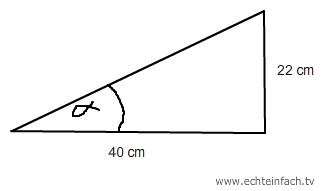 Die Steigung (Steigungsdreieck) ergibt sich aus 22/40=0,55 zu 55%.