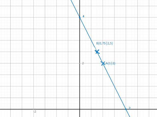Der Punkt B ist also bei B(0,75|2,5) zu finden.