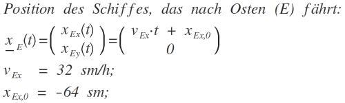 xEx,0 = -64 sm; // ergibt sich da das Schiff zum Zeitpunkt t2 = 2 h bei P(0|0) ankommt.