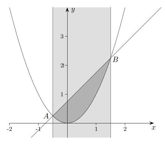 Hilfe: die Fläche innerhalb des Streifens und unterhalb der Parabel berechnet