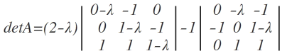 (2-λ)((-λ)(1-λ)(1-λ)+1-λ)-1(1-λ)=λ^4-4λ^3+6λ^2-4λ+1