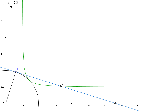 Durch Verschieben des Reglers für px kann ich im Programm (im Bild natürlich nicht) demonstrieren, dass der Punkt sich tatsächlich auf der Kurve bewegt.