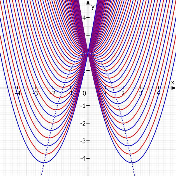 Ich skizziere mal etwas mehr Graphen als du eigentlich sollst und die Ortskurve der Scheitelpunkte.