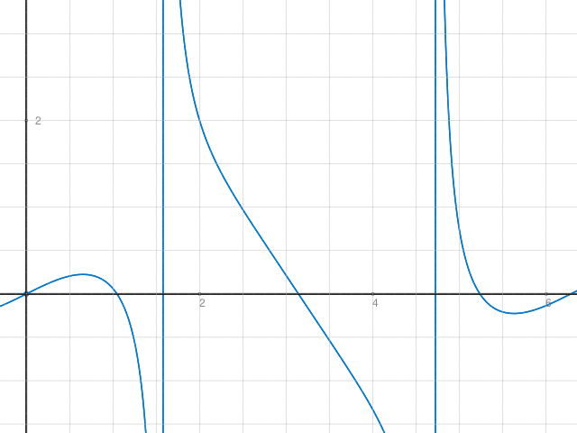 Wertebereich: ganz R. Wegen einfachen Nulldurchgängen und Polen.