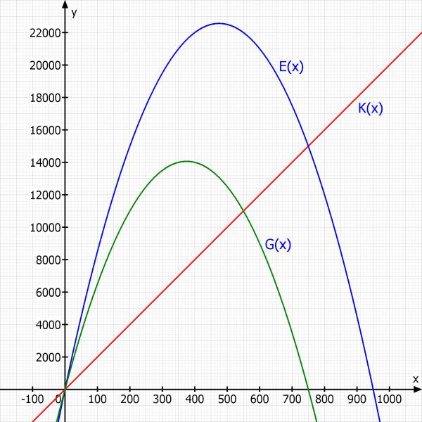 3) Zeichne die Kosten,-Erlös- Gewinnfunktionen in ein Koordiantensystem.