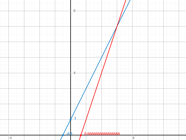 Der Schnittpunkt kann nun bei x=3 und y=7, also P(3|7) abgelesen werden. Die Lösung dieses Gleichungssystems ist also eben x=3 und y=7.