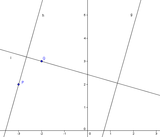 i(x): i soll senkrecht auf g stehen, hat also die Steigung -2/7. Außerdem soll sie durch den Punkt (-2|3) gehen, hat also die folgende Gleichung zu erfüllen: