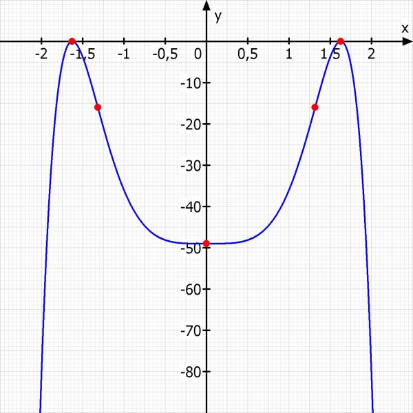 Die Funktion ist Achsensymmetrisch, daher brauche ich die Kurvendiskussion nur für alle positiven x machen. Negative x verhalten sich Achsensymmetrisch.