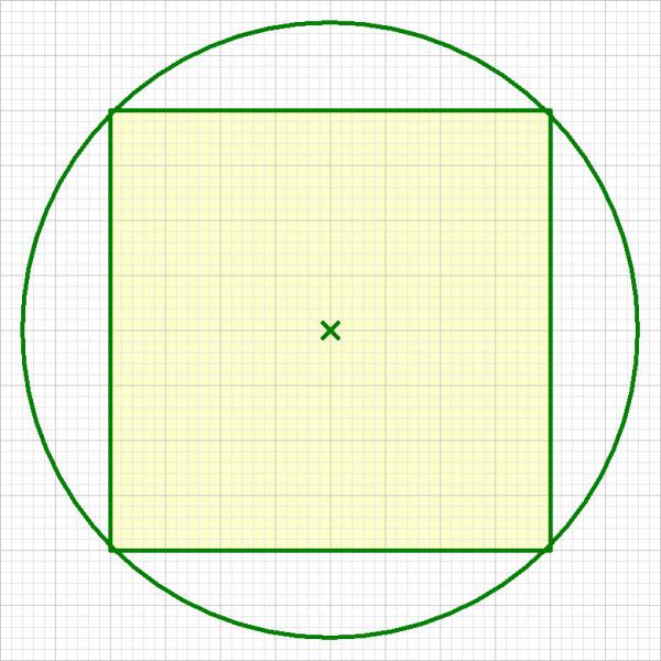 Ich hätte das nicht in der Einheit m rechnen können sondern in jeder beliebigen Einheit. Wenn die Quadratfläche 1 km^2 ist dann ist die Kreisfläche 1.571 km^2