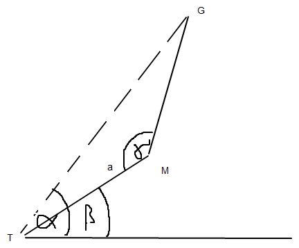 Mit dem Sinussatz, kann man direkt x (die Strecke TG) bestimmen:
