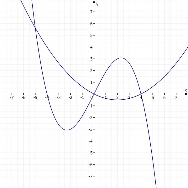 f(x)= 1/8 * (x^2 - 4x) auf der x-Achse zweimal schneidet. f und g stehen im Urspung senkrecht aufeinander