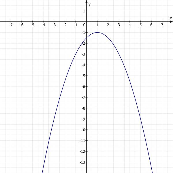 f(x) = a * (x - Sx)^2 + Sy = -1/2 * (x - 1)^2 - 1 = -1/2 * (x^2 - 2x + 1) - 1 = -1/2*x^2 + x - 3/2