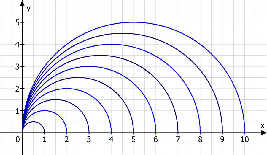 Ich zeichne mal ein paar Halbkreise für e = 1 bis 10