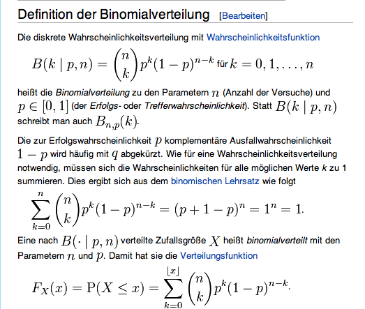 Bei der Binomialverteilung wird in der Schule v.a. mit der ersten Formel gerechnet. Und dann auch gelernt, wie man aus dem Taschenrechner die Resultate rausholt.