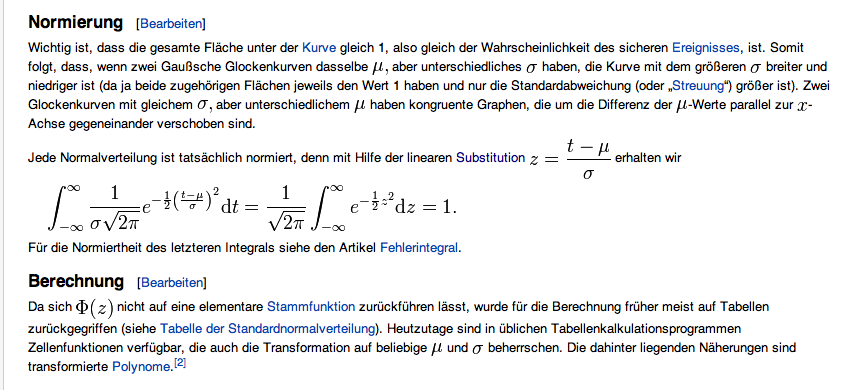 Bei Aufnahme und Abschlussprüfungen sind teilweise nur Tabellen und keine Taschenrechner erlaubt. Da ist bei der Normalverteilung die Normierung nicht ganz unwichtig: