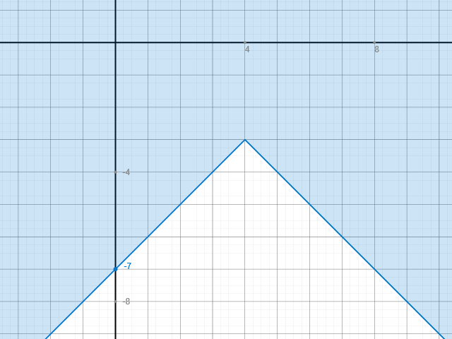 Nun sieht man ja außerdem, dass wir nur die Steigung x haben. Also eine Gerade welche den Winkel 45° hat, bzw. eine parallele zur Winkelhalbierenden. Wegen dem Betrag hat diese beim Maximum einen Knick. Letztlich solltest Du so etwas auf Papier bringen: