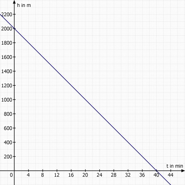 a) Zeichne den Graphen der Funktion Zeit t (in min) → Höhe h (in m).