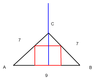 Ich platziere das gleichschenklige Dreieck so, dass die Seite a auf der x-Achse liegt und der Punkt C auf der y-Achse.